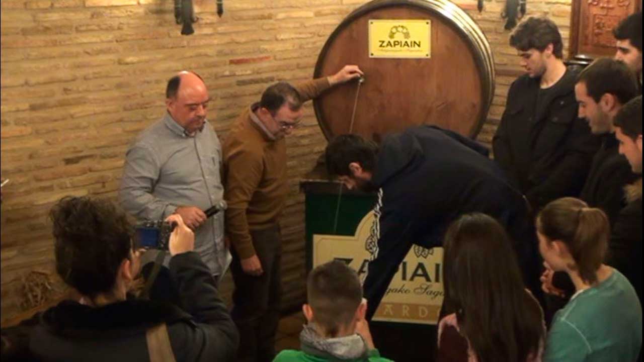 En esta ocasión, el encargado de abrir la kupela y servir la primera sidra fue el jugador de balonmano Gurutz Aguinalgalde, en representación del equipo Naturhouse, quien agradeció la invitación y deseó un buen año a la Sidrería